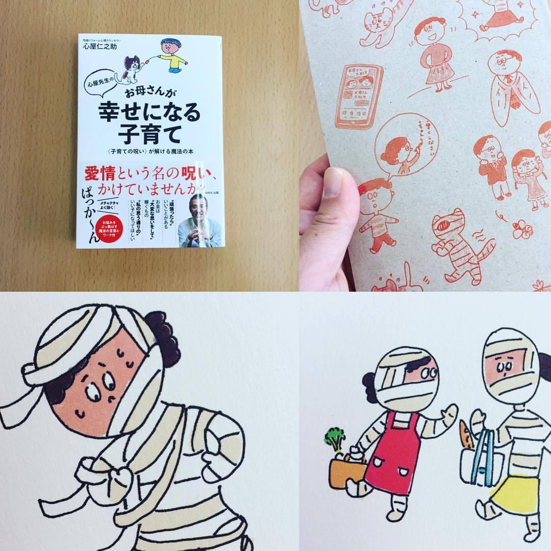『お母さんが幸せになる子育て』でました〜!イラストは風間勇人さん。表紙にもモリモリ。可愛いです!私が大好きなのは、ミイラのお母さんたち。#風間勇人 #装丁 #bookdesign #オフィスキントン #お母さんが幸せになる子育て