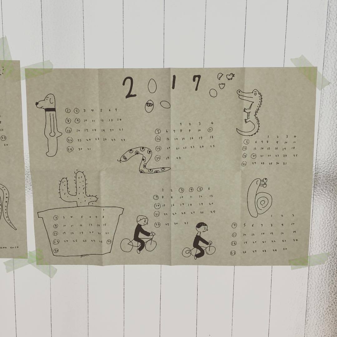 頂いたカレンダーを貼ってみました〜。かわいい!! 仕事の合間にチラ見すると、なごめそう。